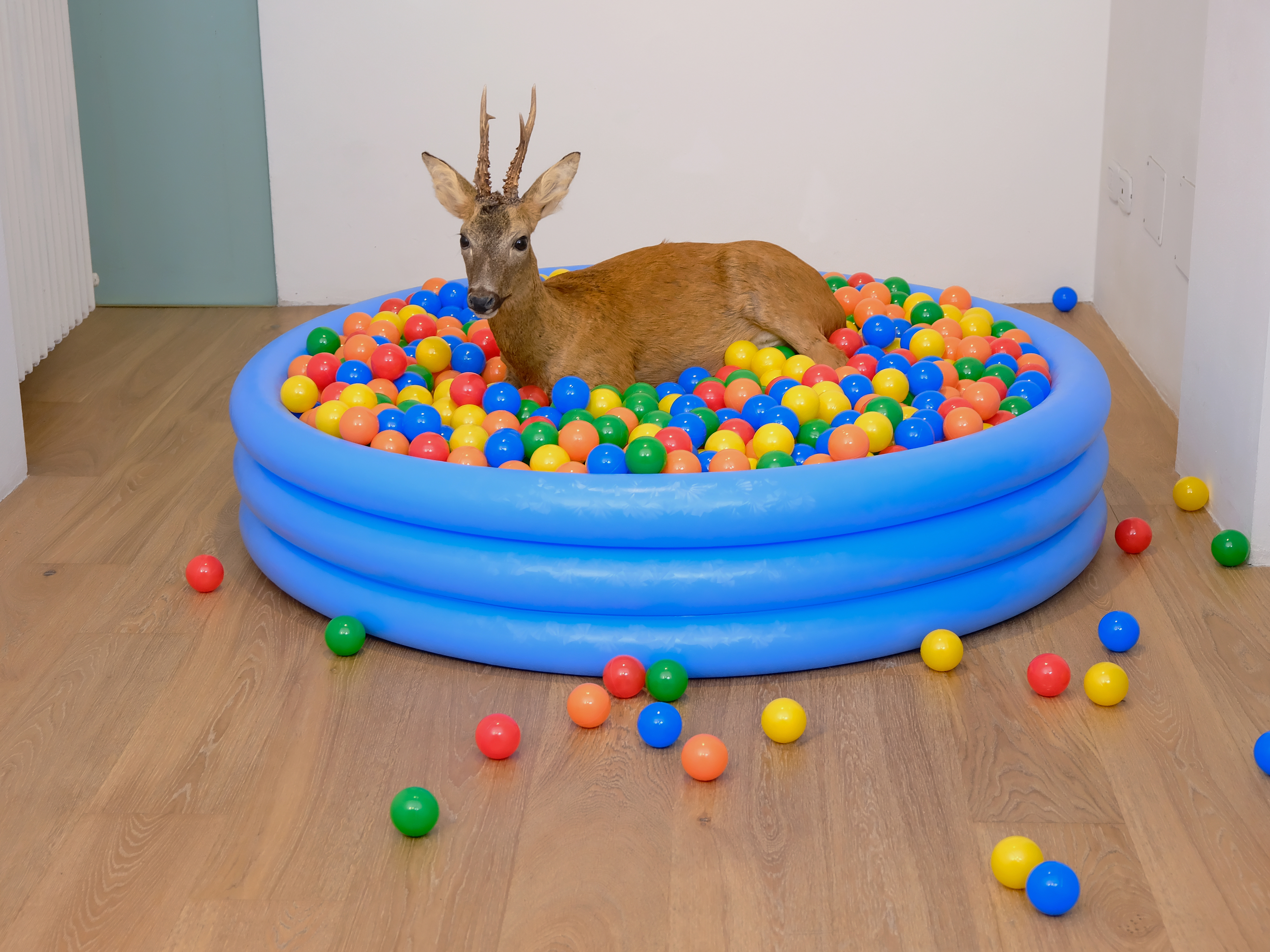 Silicone sculpture with vocal audio, electrode stickers and stage curtain, 270*130cm, 2021