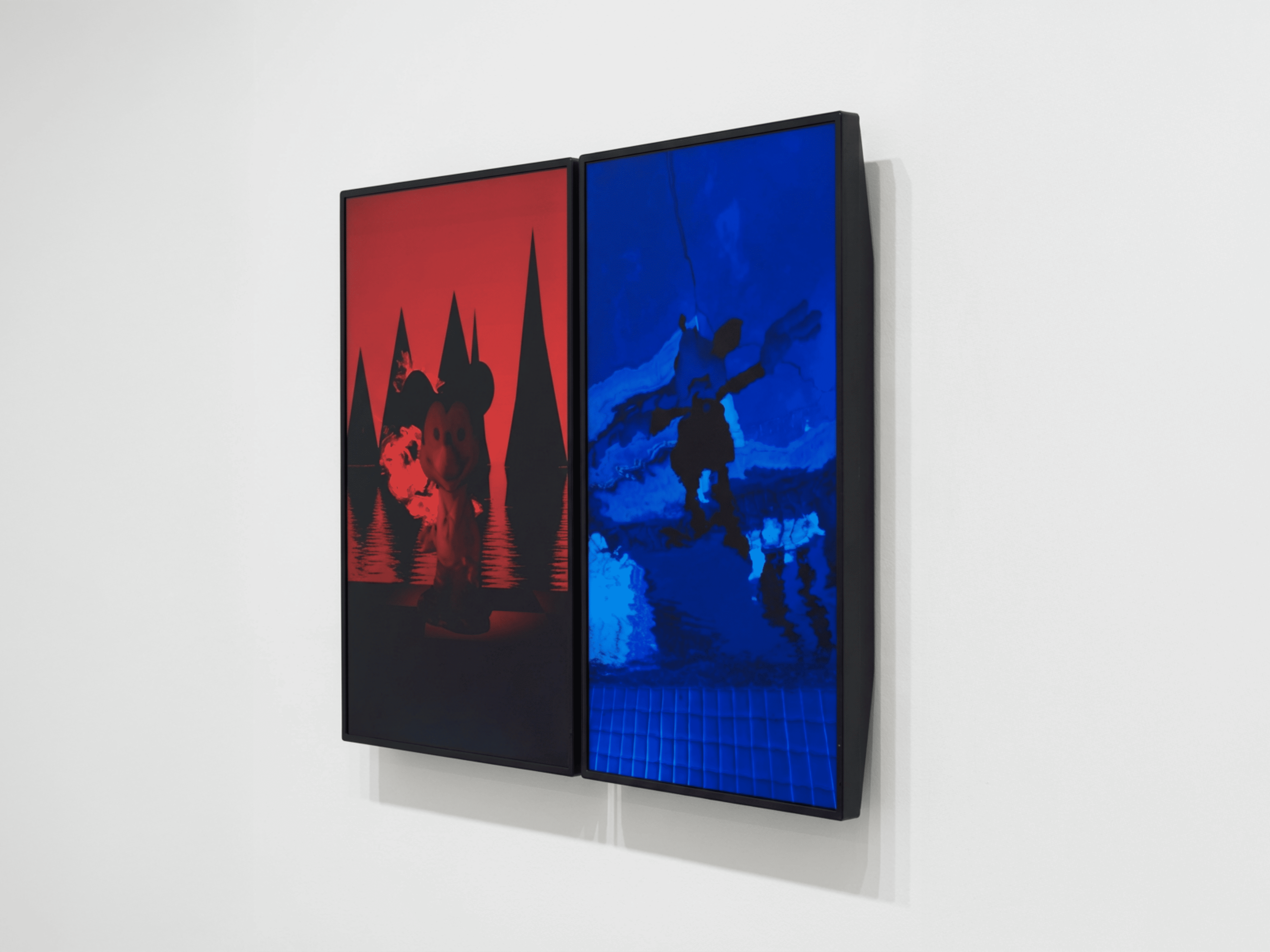 On the right screen, the NPC takes the form of an inflatable Big Cat toy. It combines features of toys, teaching tools, and surveillance devices. It speaks in a soft and playful tone. It scans, measures, and sorts emotional and memory traces in child viewers. Attachments to bloodline, private ownership, and heroic fantasy are converted into measurable residue values. These values are overwritten through nursery songs, shared rhythm, and positive feedback. By shifting ideological force into early childhood, the work shows how control can appear gentle and harmless while still being deeply effective.